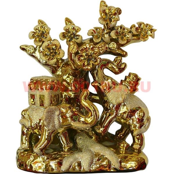 2 слона с сакурой из фарфора "под золото" 27 см