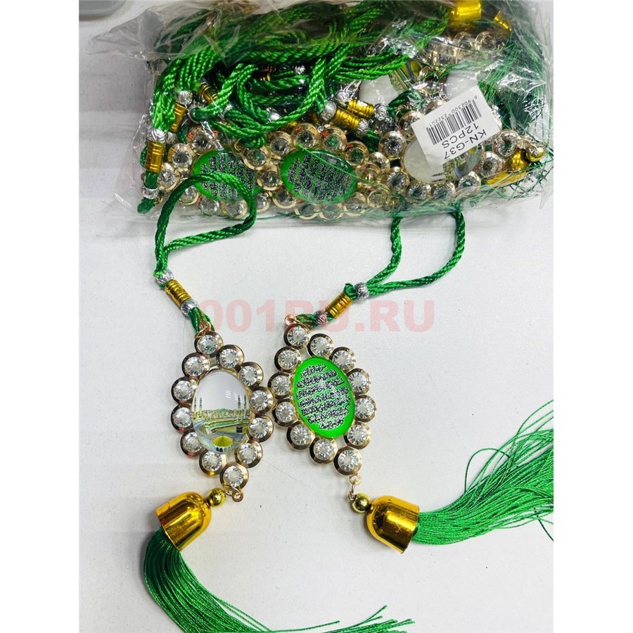 Амулет мусульманский (KN-G37) со стразами и зелеными нитками 12 шт/упаковка (2 вариант)