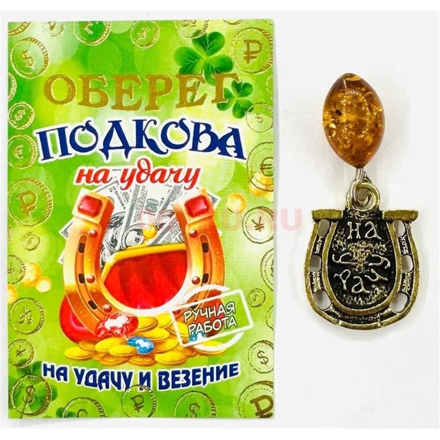 Амулет оберег Подкова с янтарем кошельковый денежный