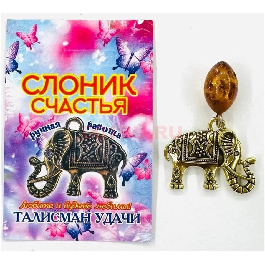Амулет оберег Слоник с янтарем кошельковый денежный
