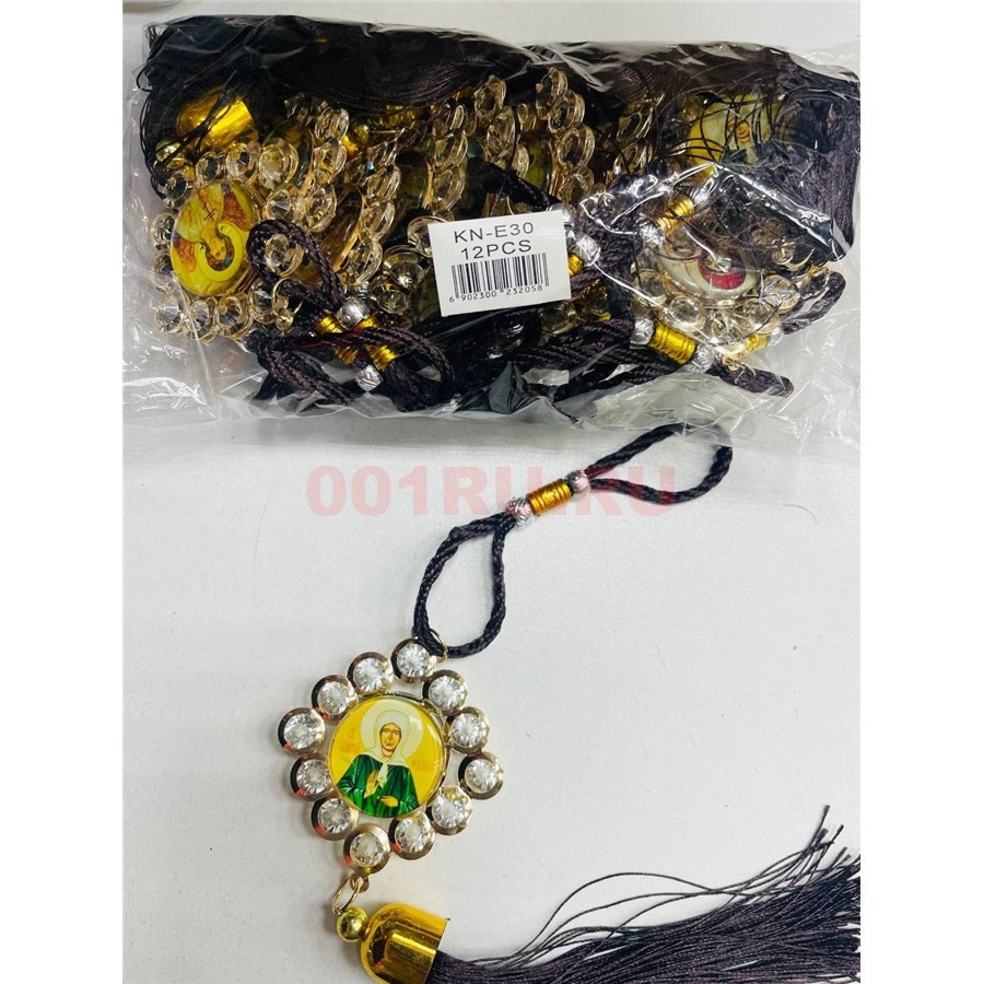 Амулет православный (KN-E30) со стразами и черными нитками 12 шт/упаковка