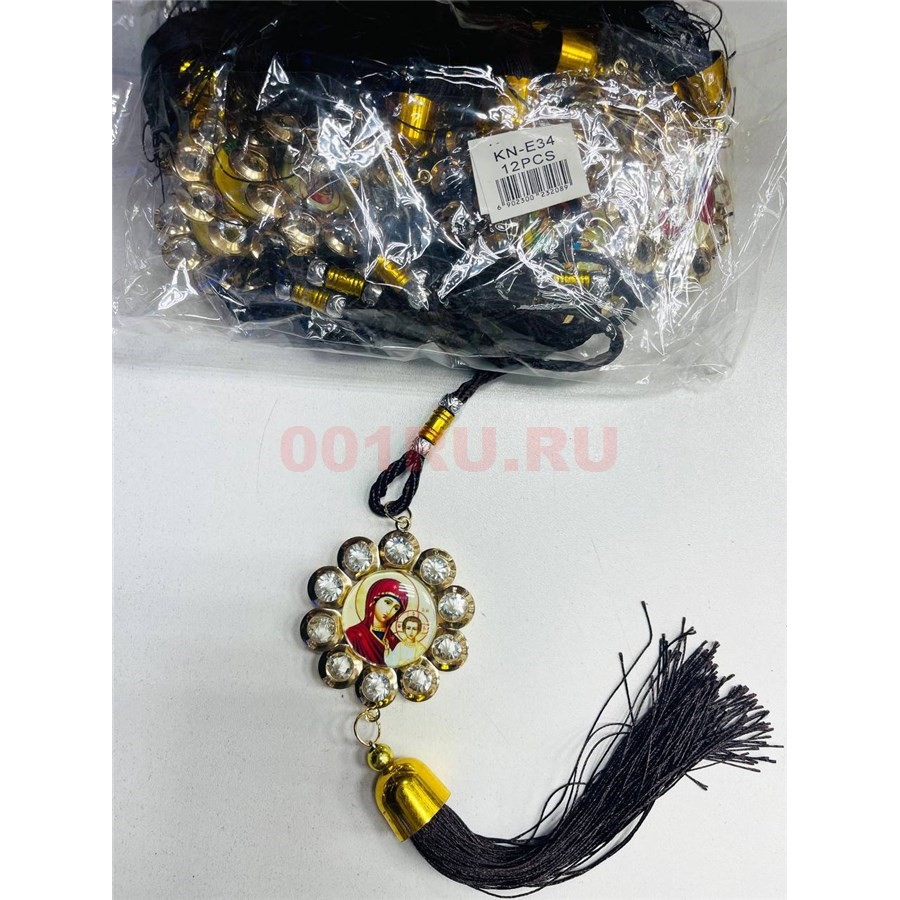 Амулет православный (KN-E34) со стразами и черными нитками 12 шт/упаковка