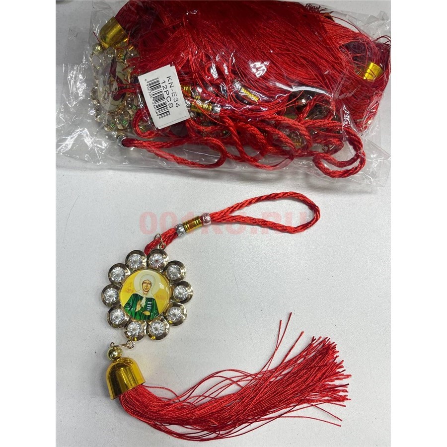 Амулет православный (KN-E34) со стразами и красными нитками 12 шт/упаковка