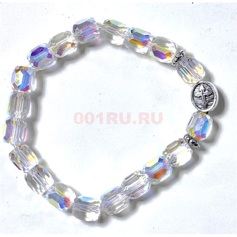 Браслет 10 мм прозрачный с крестиком