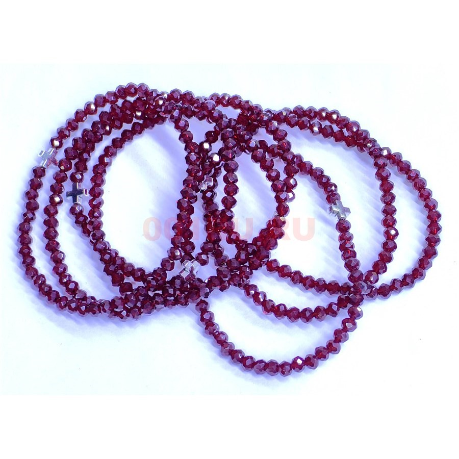 Браслет 2-3 мм с крестом из стекла цвет гранатовый