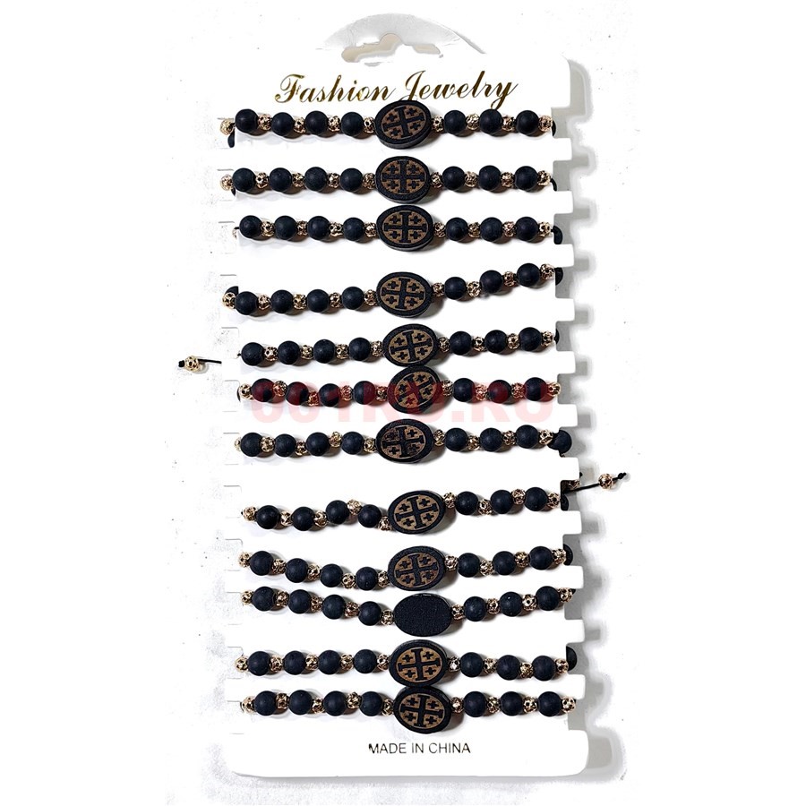 Браслет (BP-909) православный крест с черными бусинами шунгита 12 шт/упаковка