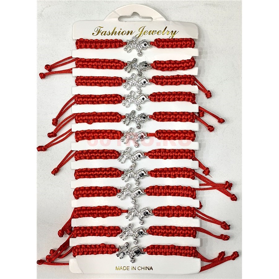 Браслет (BR-907) с толстой красной ниткой Лошадка 12 шт/уп 2 цвета