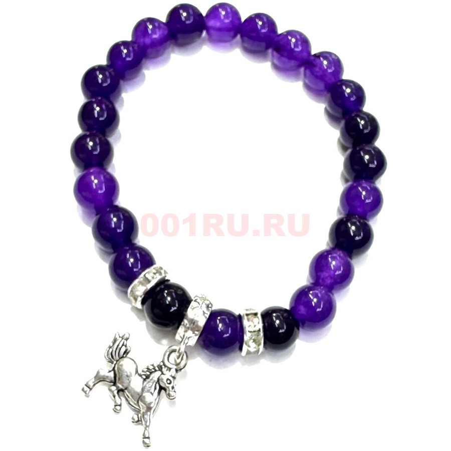 Браслет из аметиста 8 мм с лошадкой символ 2026 года
