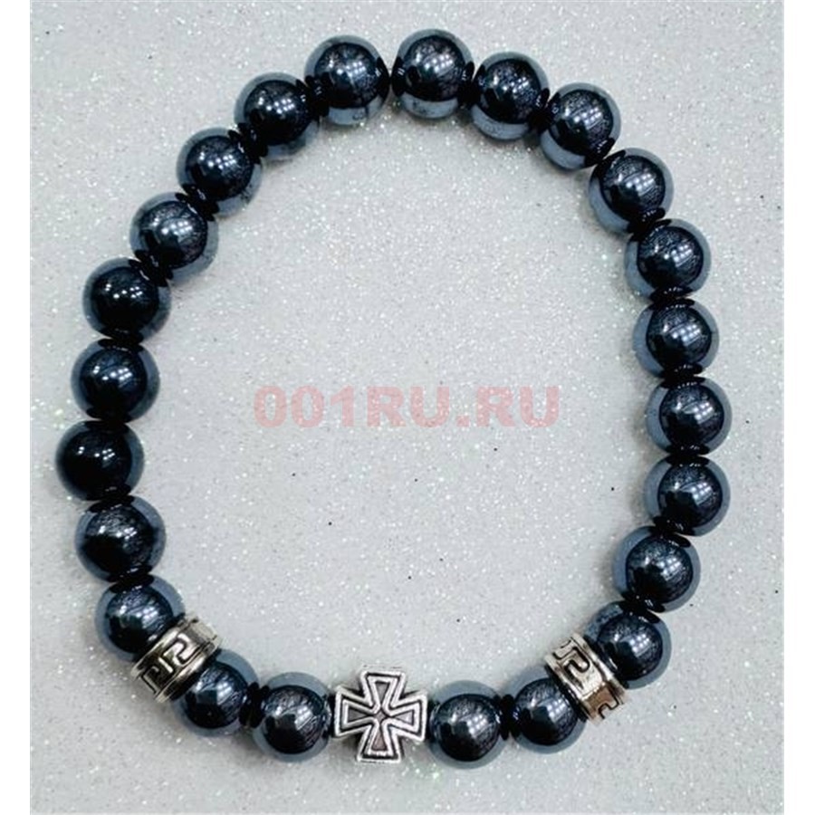 Браслет из гематита (BR-5188) с фурнитурой и крестиком 12 шт/упаковка