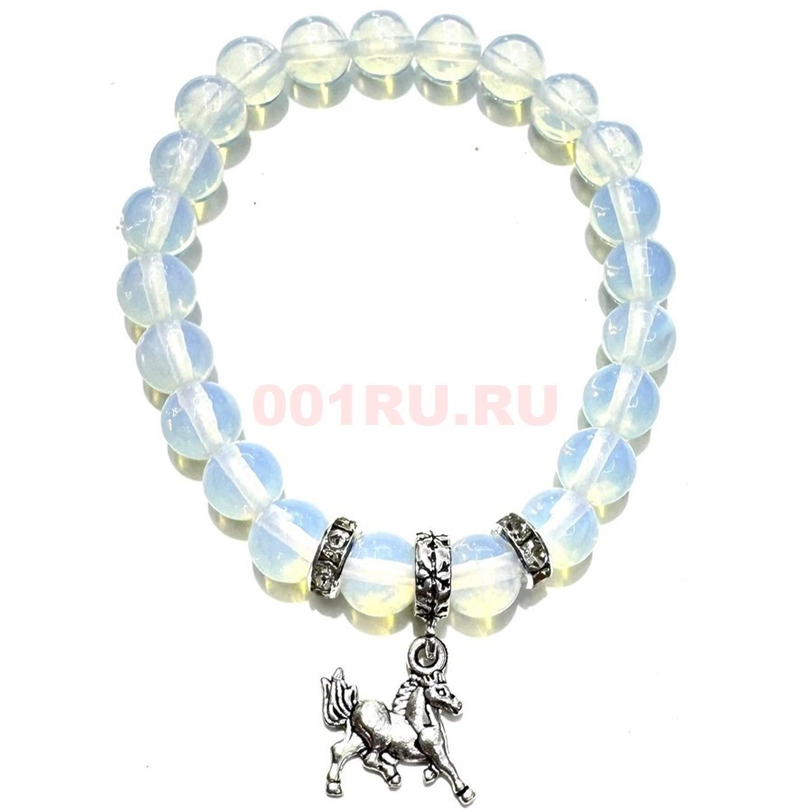 Браслет из лунного камня 8 мм с лошадкой символ 2026 года