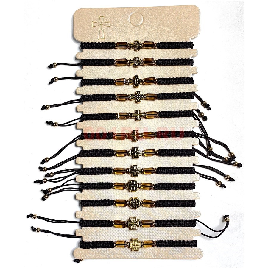Браслет коричневый (M-315) крест с бусинами 12 шт/упаковка