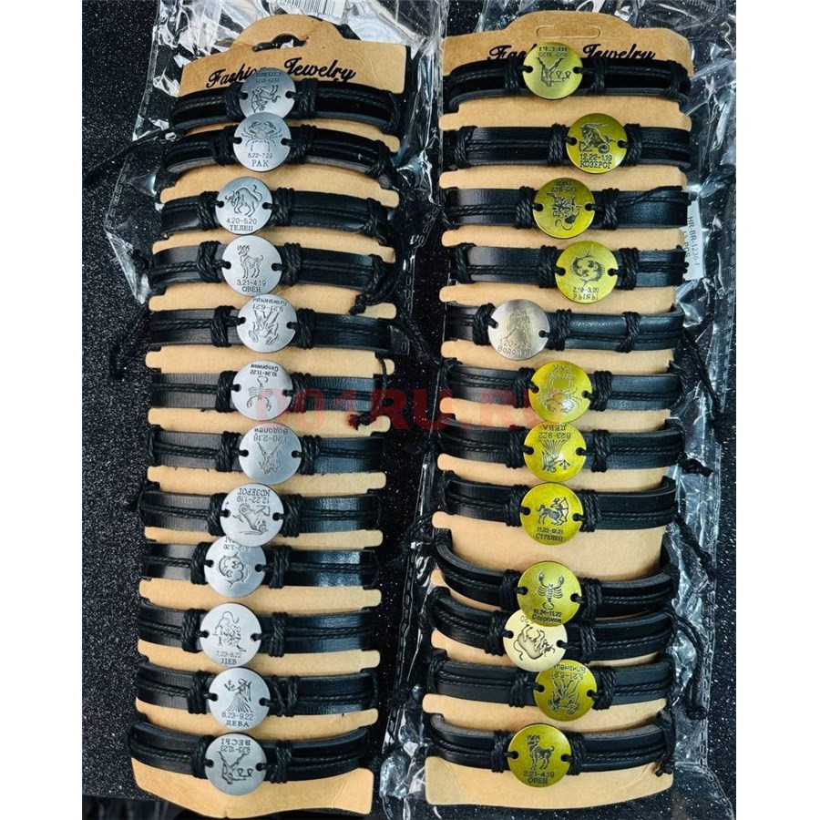 Браслет кожаный (BR-1236) знаки зодиака круг 2 цвета 12 шт/упаковка