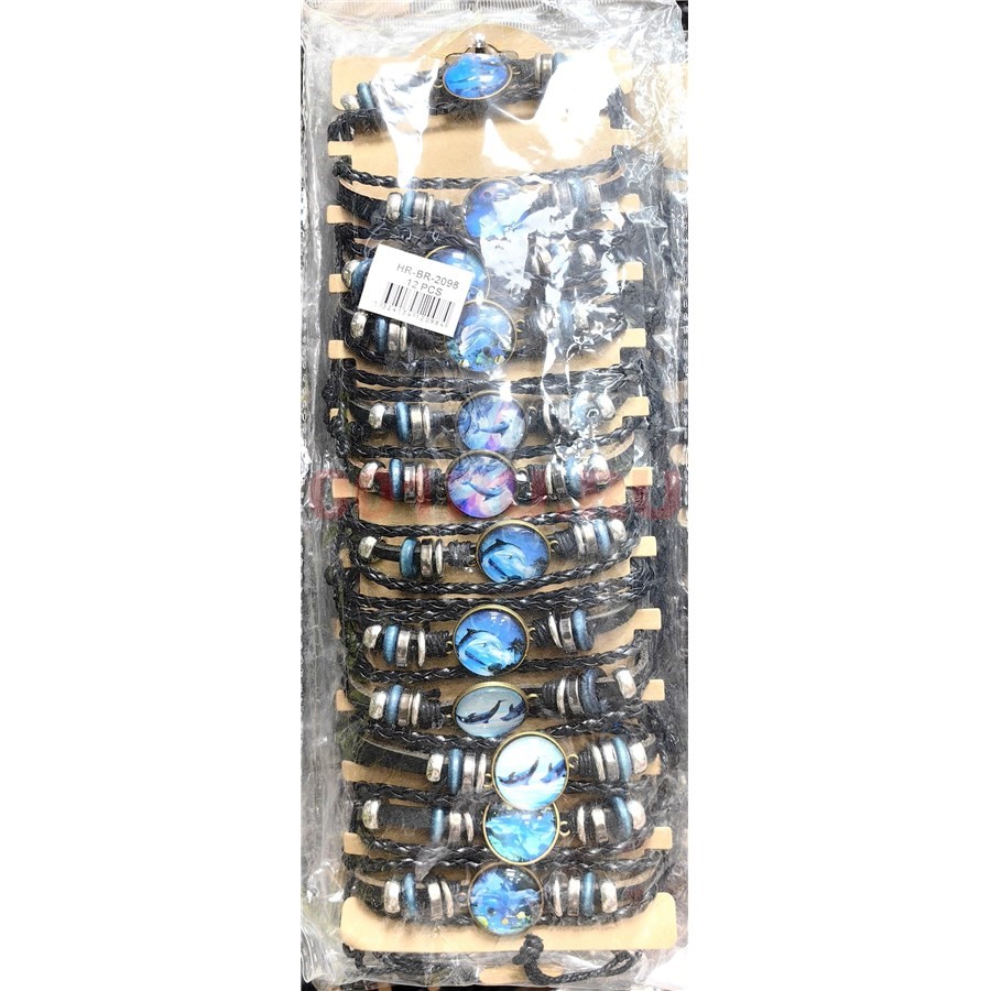 Браслет кожаный «дельфины» металл круглый 12 шт/упаковка (BR-2098)