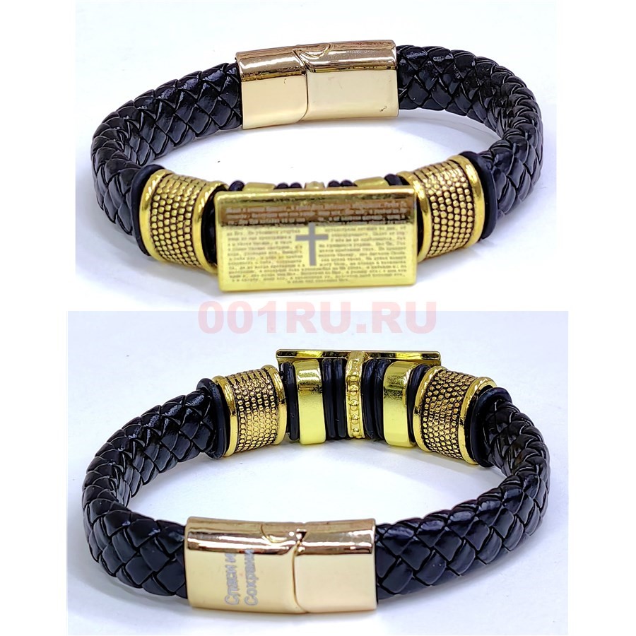 Браслет кожаный (RJ-127) с молитвой цвет золото 24 шт/упаковка