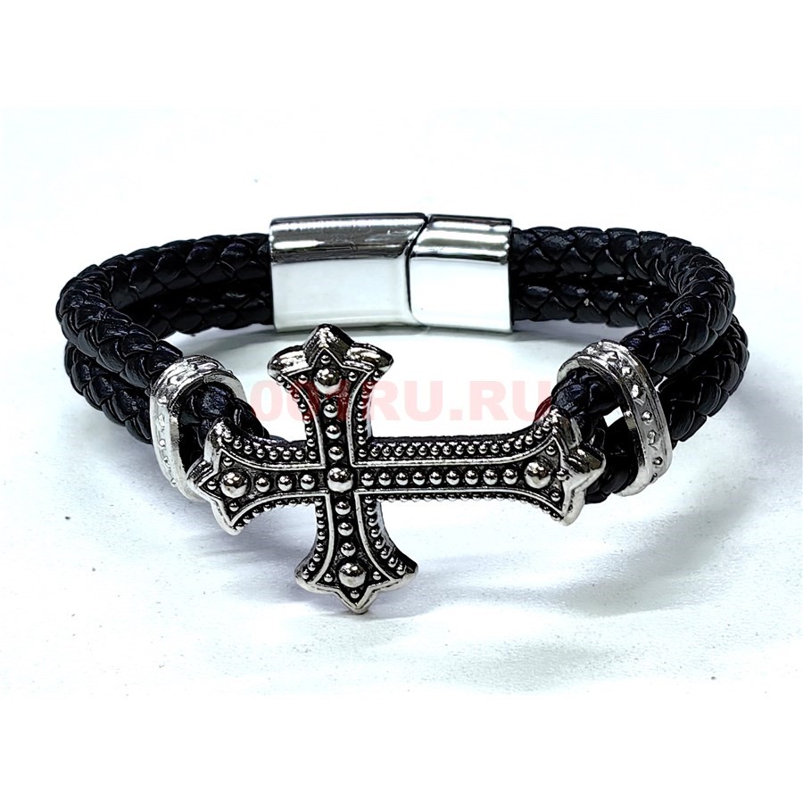 Браслет кожаный (RJ-134) с большим крестом 24 шт/упаковка