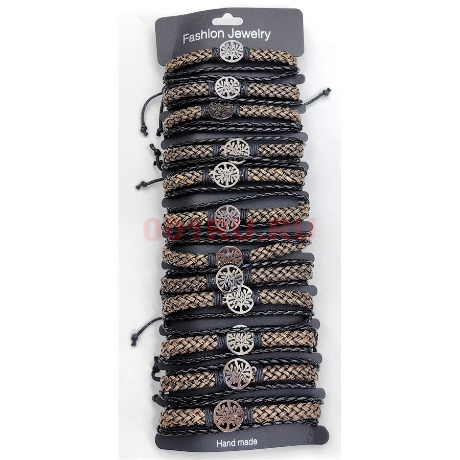 Браслет кожаный с фурнитурой (BR-2573) Дерево коричневый 12 шт/упаковка