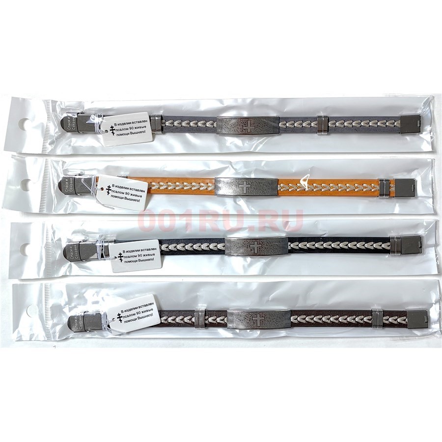 Браслет кожаный с молитвой (RJ-120) цветной прошитый 12 шт/упаковка