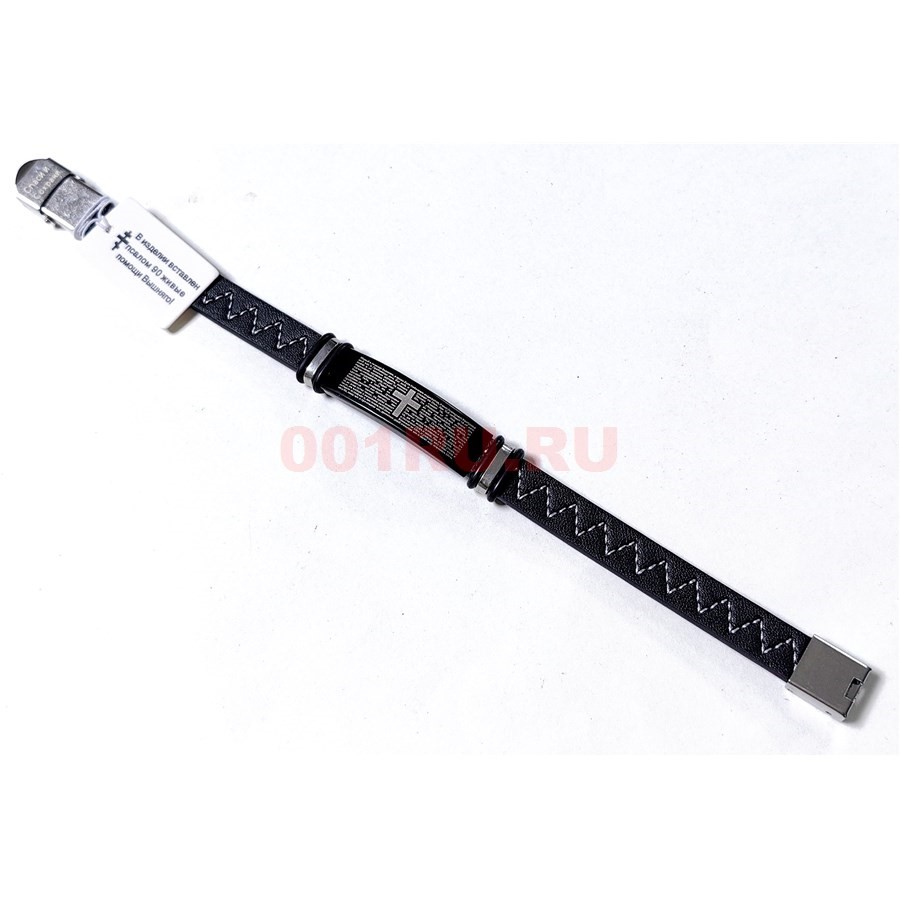 Браслет кожаный с молитвой (RJ-121) черный прошитый белой ниткой 12 шт/упаковка