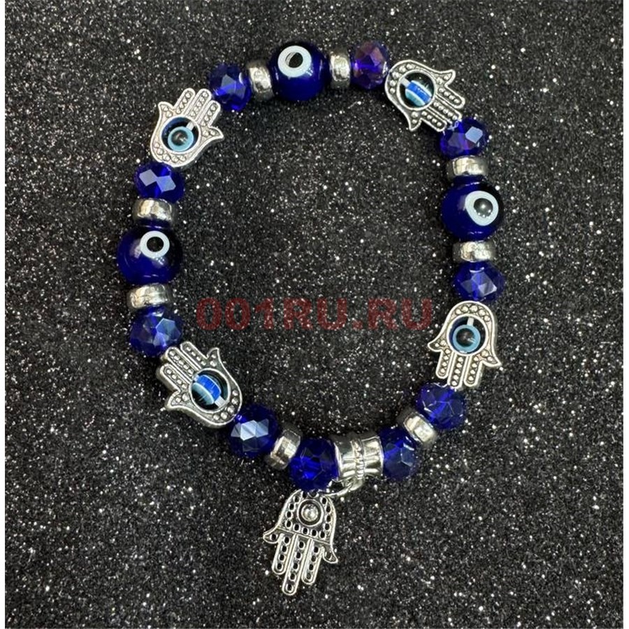 Браслет от сглаза (BR-234T) стекло синий с ладошкой 12 шт/упаковка
