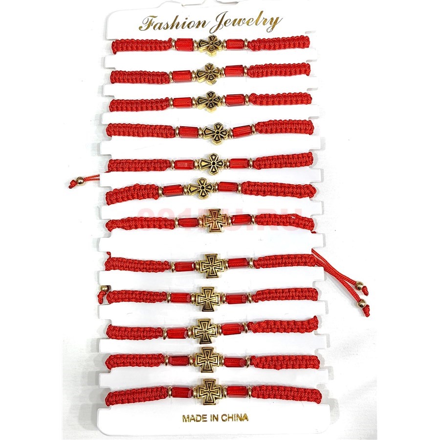 Браслет с толстой красной нитью (BP-236) крест с бусинами 12 шт/упаковка