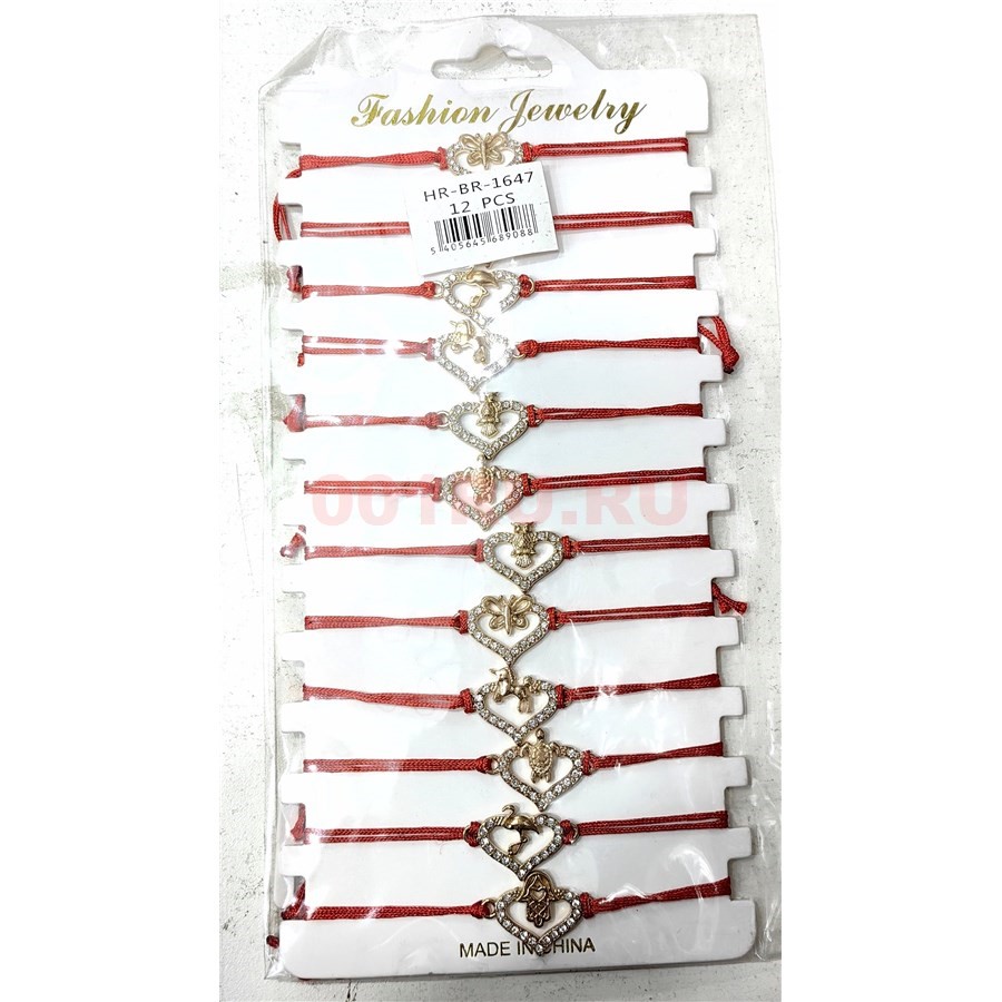 Браслет с тонкой (BR-1647) красной ниткой Сердце с животными 12 шт/упаковка