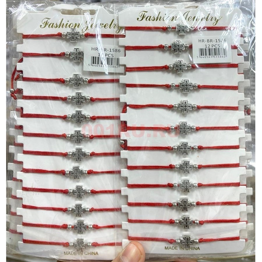 Браслет с тонкой красной нитью (BR-1586) и крестом 12 шт/упаковка