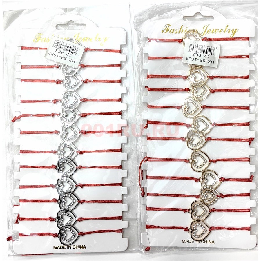 Браслет с тонкой красной нитью (BR-1633) сердце со стразами 12 шт/упаковка