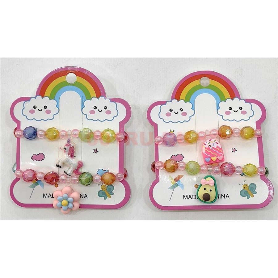 Браслеты детские 2-в-1 «авокадо и единорог» 12 пар/упаковка