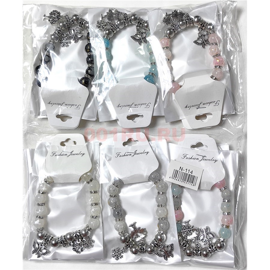 Браслеты с бусинами (N-14) и подвесками 12 шт/упаковка