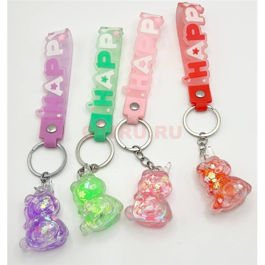 Брелок Единорог с водой и блестками с браслетом пластмассовый