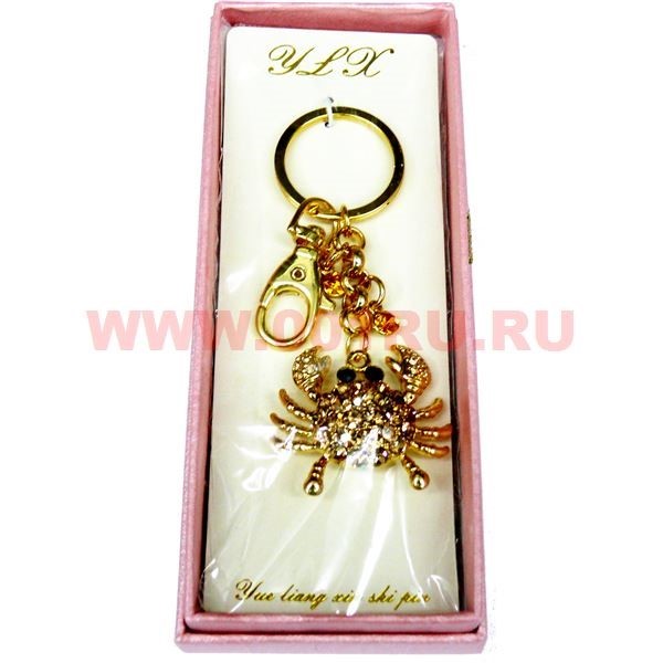 Брелок "Краб", стразы, 6 штук в уп.,цена за штуку