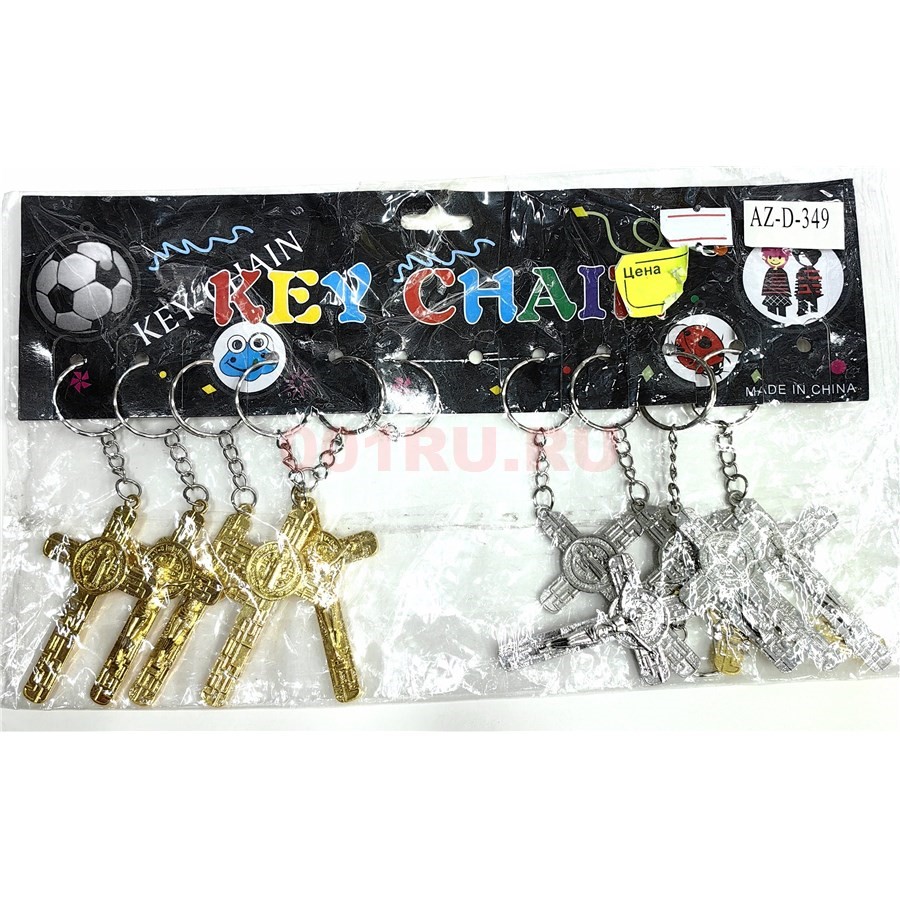 Брелок металлический (AZ-D-349) крест 2 цвета 12 шт/упаковка