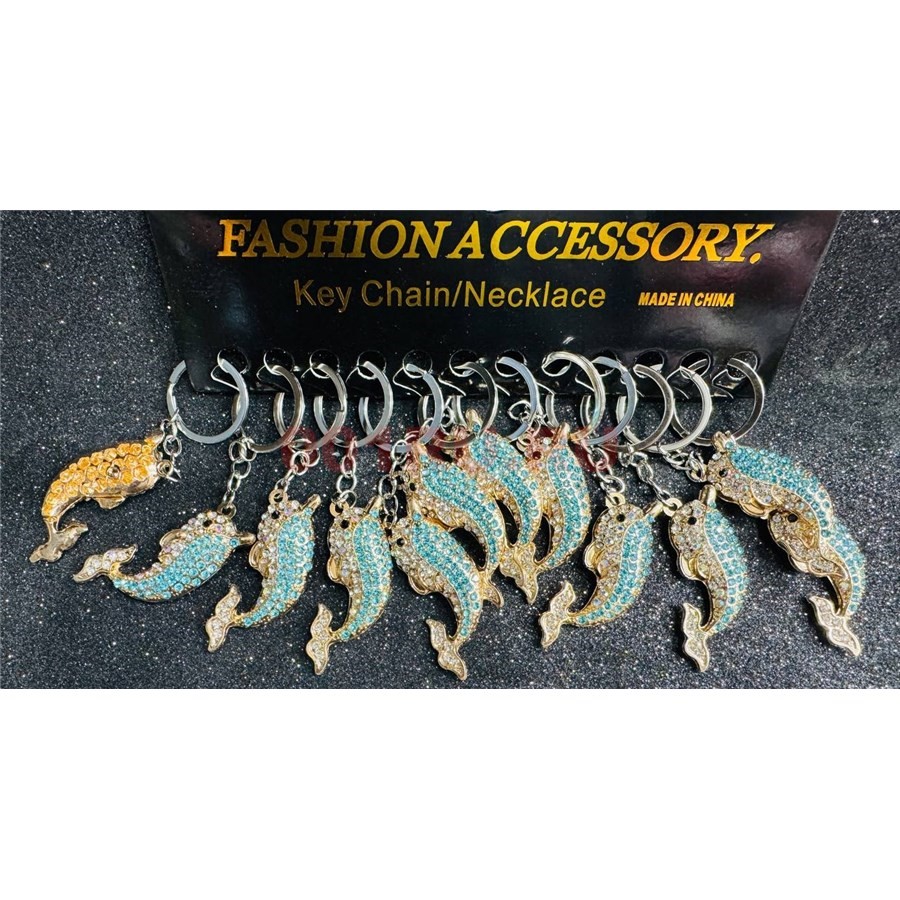 Брелок металлический (KY-B106) дельфин со стразами 12 штук/упаковка