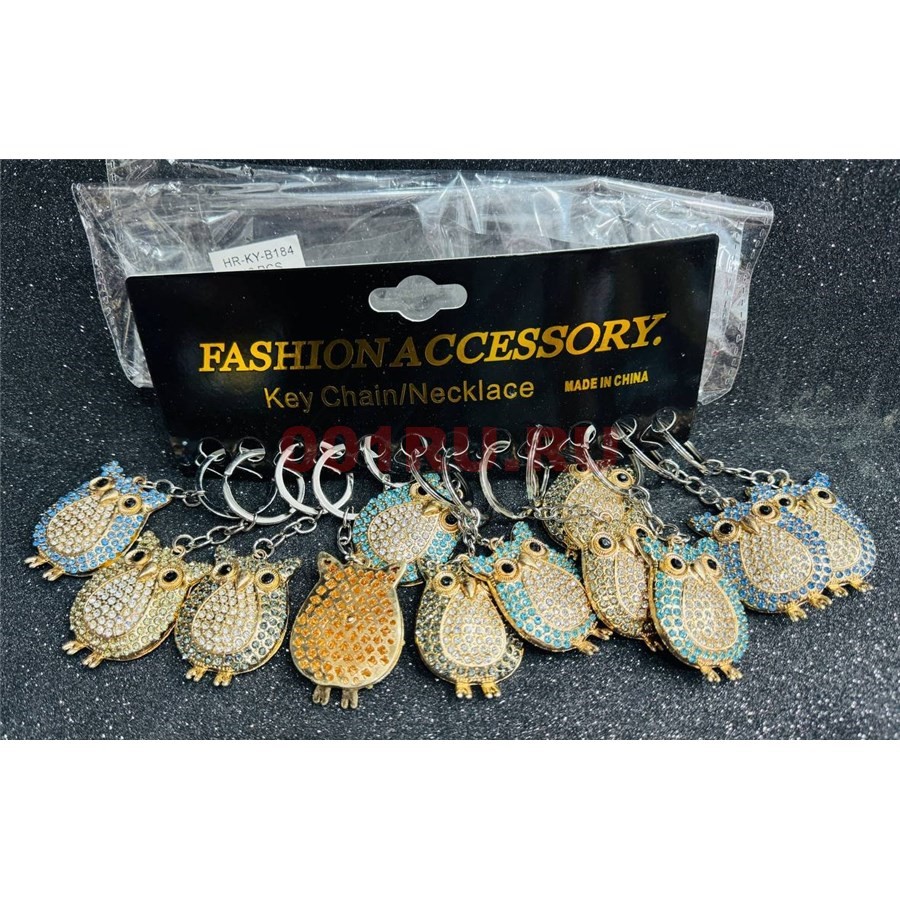 Брелок металлический (KY-B184) сова со стразами 12 штук/упаковка