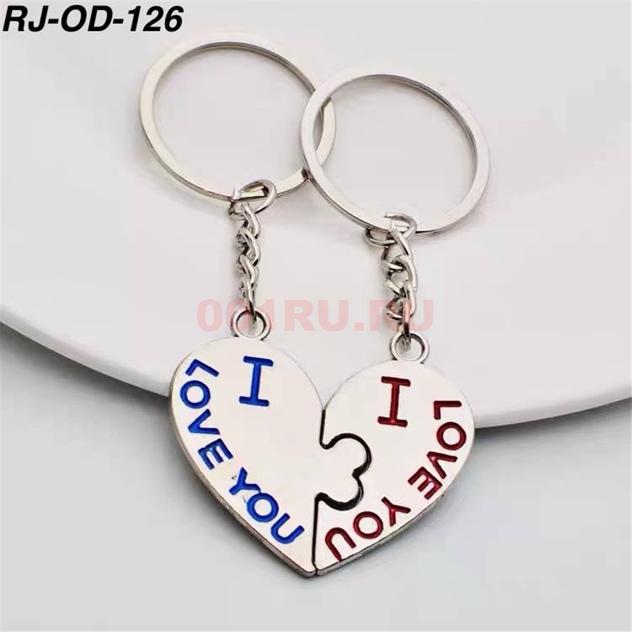 Брелок металлический парный (RJ-OD-126) сердце I Love You 12 пар/упаковка