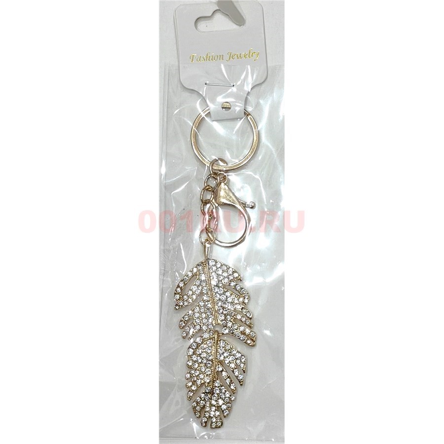 Брелок металлический «перо» с карабином и стразами 12 шт/упаковка