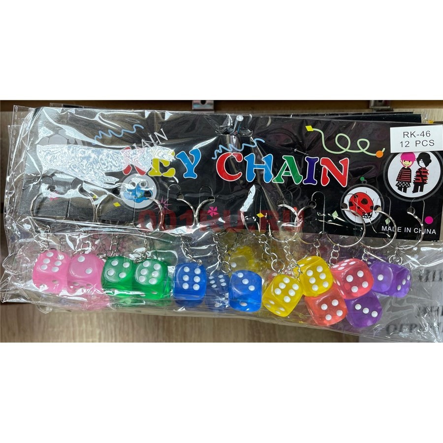 Брелок пластиковый (RK-46) кубик игральная кость цветная 120 шт/блок