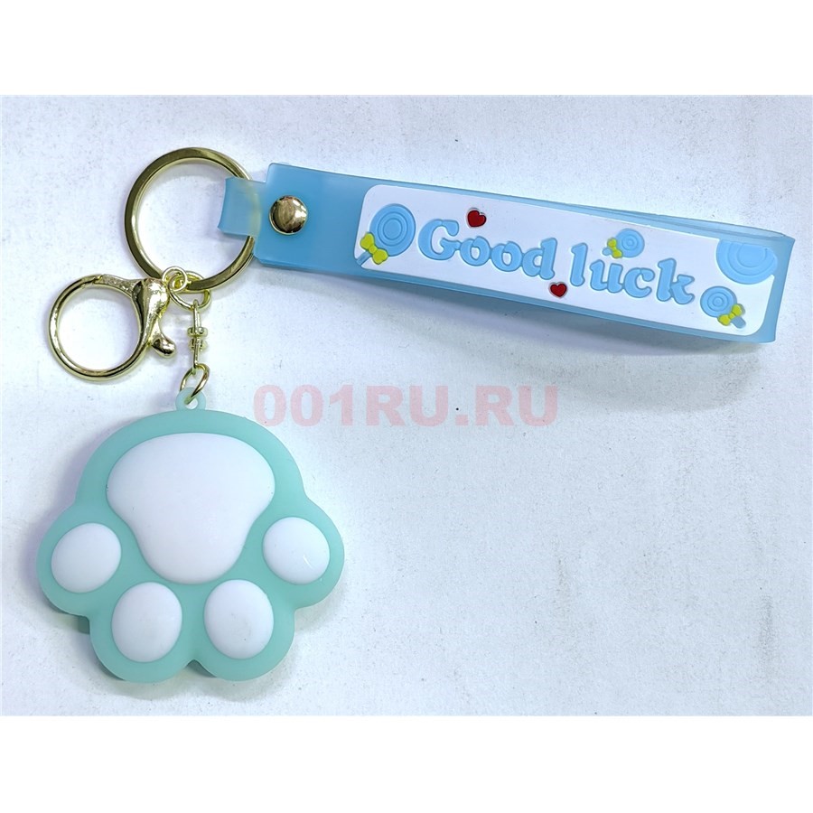 Брелок резиновый большой Кошачья лапка цвет лазурный с карабином 12 шт/упаковка