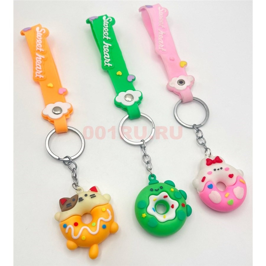 Брелок резиновый (LJ-1123) котик пончик с браслетом 120 шт/блок