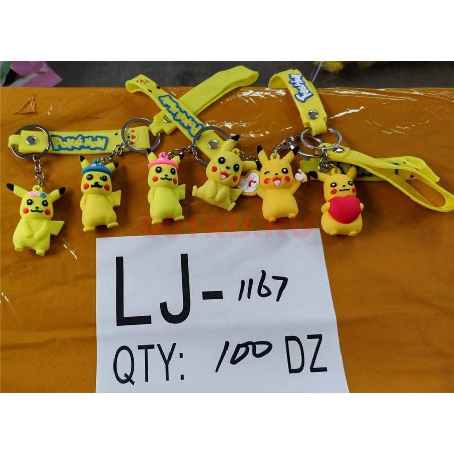Брелок резиновый (LJ-1167) покемоны пикачу с браслетом 120 шт/блок