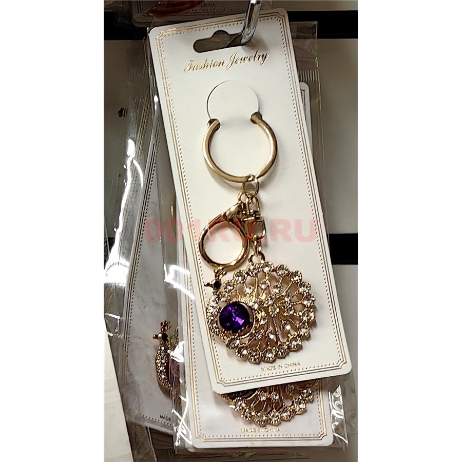 Брелок со стразами (1059) павлин с карабином 12 шт/упаковка