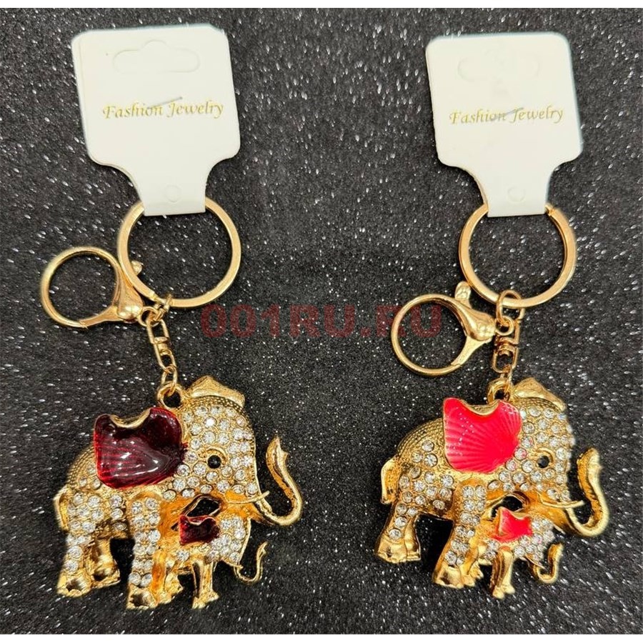 Брелок со стразами (B-53) два слоника с карабином 12 шт/упаковка