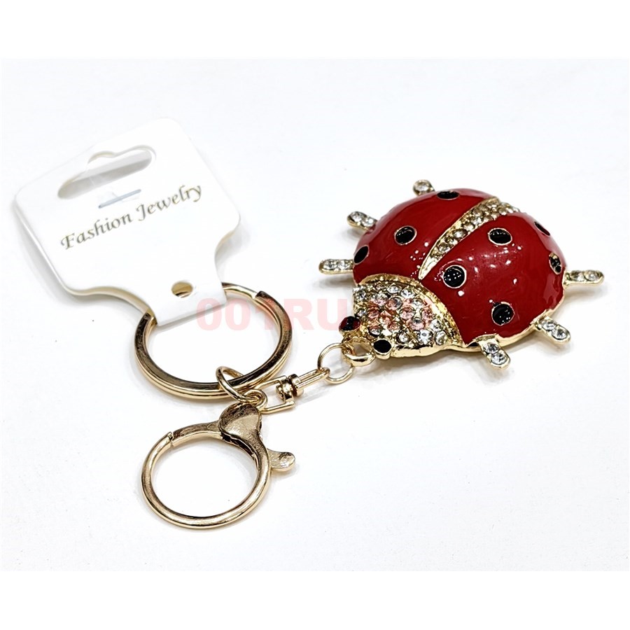 Брелок со стразами (B-156) божья коровка с карабином 12 шт/упаковка