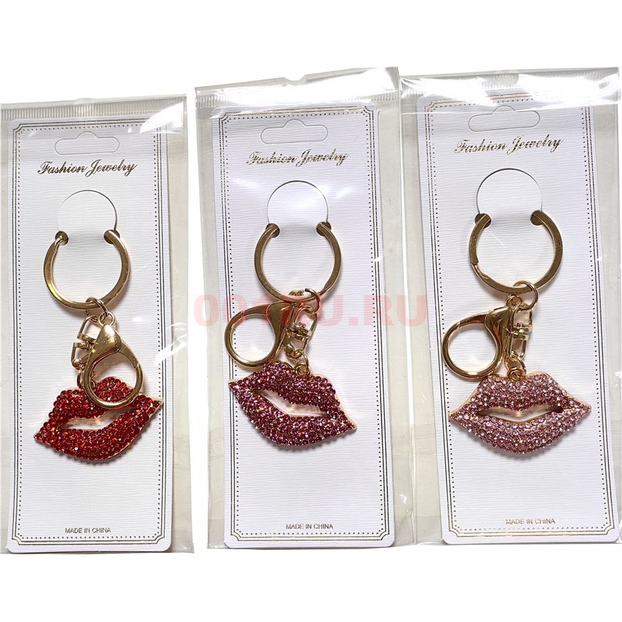 Брелок со стразами «губы» с карабином 12 шт/упаковка