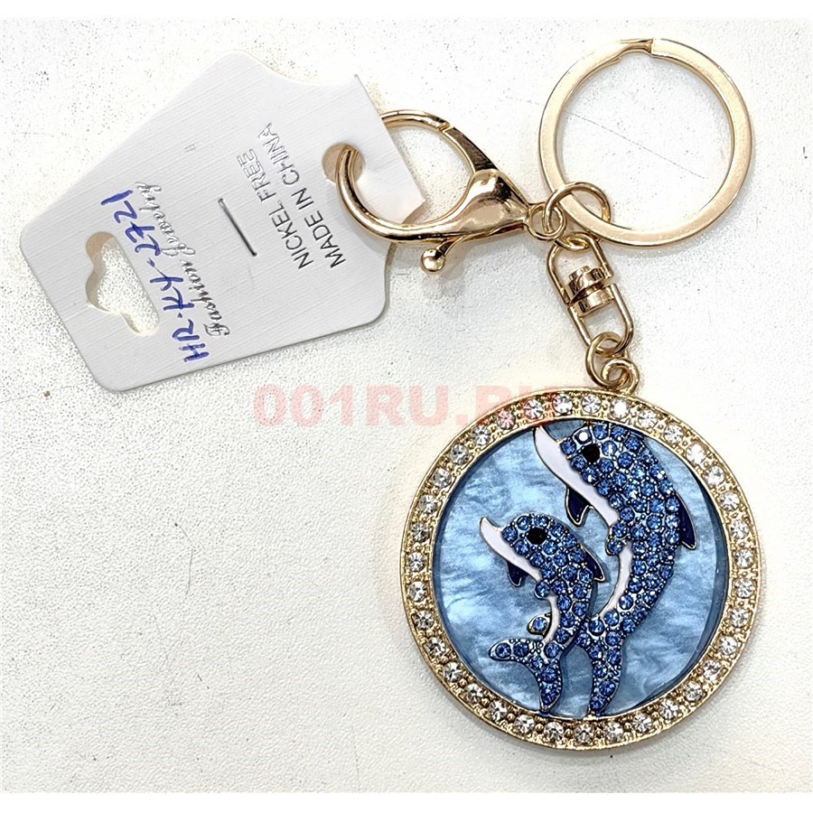 Брелок со стразами и карабином «2 дельфина» 12 шт/упаковка (KY-2721)