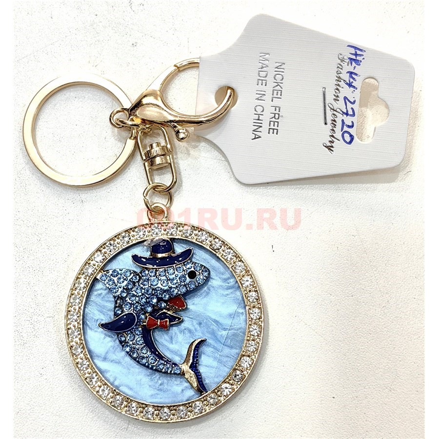 Брелок со стразами и карабином «дельфин в шляпе» 12 шт/упаковка (KY-2720)