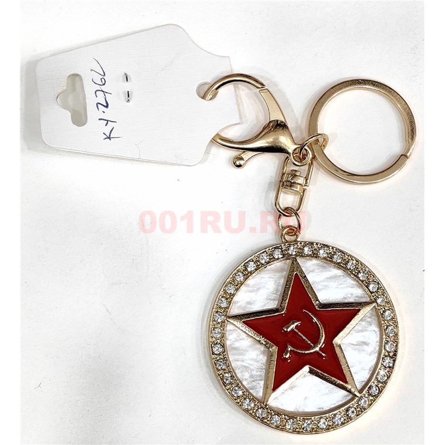 Брелок со стразами и карабином (KY-2762) звезда серп и молот круглый 12 шт/упаковка