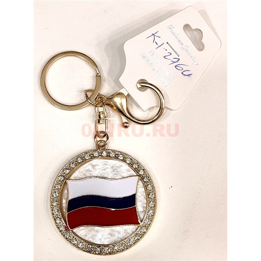 Брелок со стразами и карабином (KY-2764) герб России круглый 12 шт/упаковка