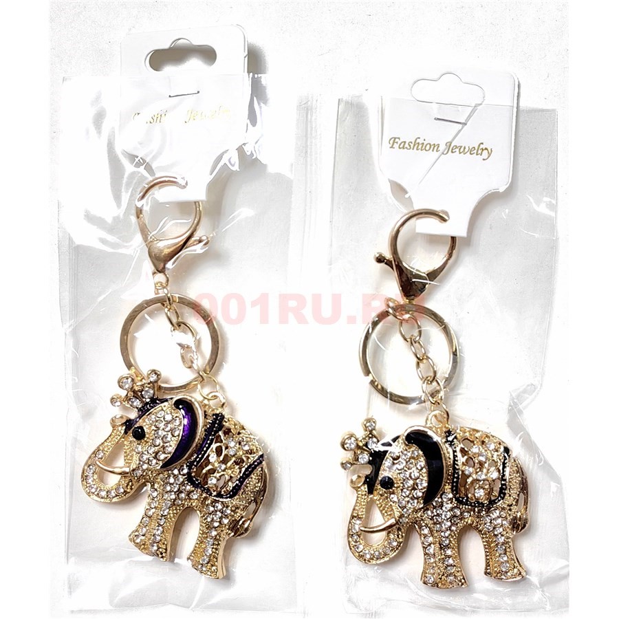 Брелок со стразами и карабином (KY-4957) Слон большой 12 шт/упаковка