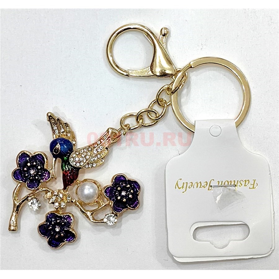 Брелок со стразами «колибри» с карабином 12 шт/упаковка (KY-4985)